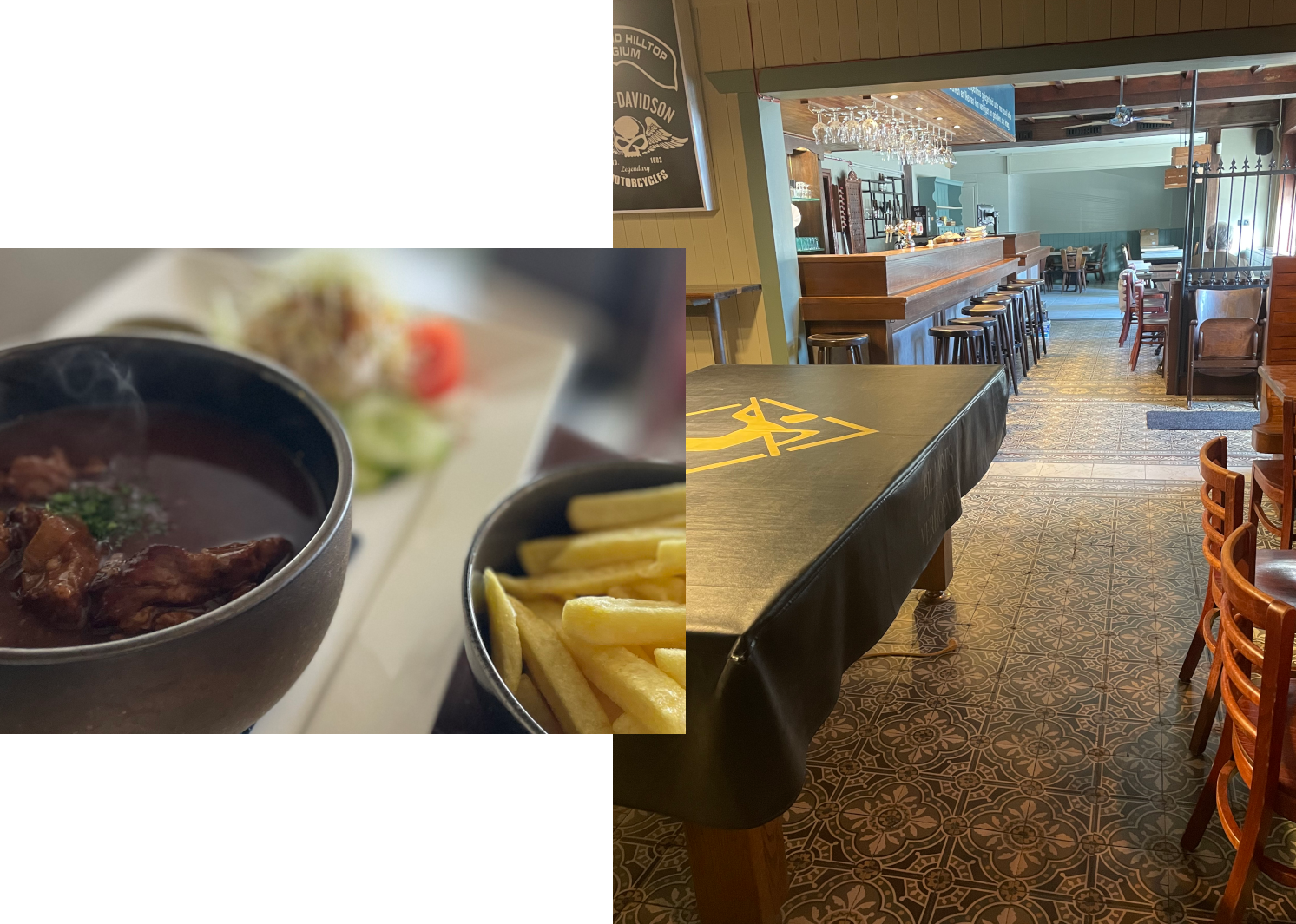 Geen moleculair gedoe, geen schuimpjes - wel frieten die durven kraken en stoofvlees dat je doet twijfelen of je niet per ongeluk bij moemoe bent binnengestapt.